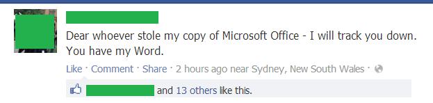 Filed Under: Facebook Status Updates Tagged With: Awesome Status Posts, Microsoft Office, Ringtone Cat Video